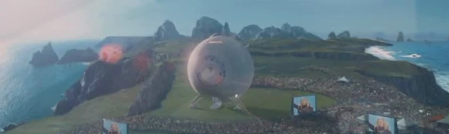 Damogran was also mentioned in the film, for the same part of the plot as in the book, albeit in less detail. It appears in a similar way to how it was described in the book, with deep blue seas and oddly shaped areas of land with rocks jutting out from them.