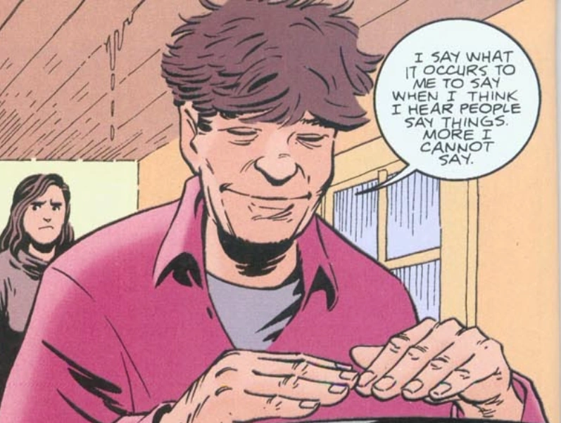 He lives in a shack with his cat, whom he calls "the Lord." He appears very deferential and largely uncertain on almost every front. He believes nothing unless he can prove it by seeing it himself.
